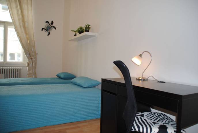 Fully equipped apartment for max.6 persons (2-bedrooms and extra doublebed) in the heart of Prague-New Town, close to many historical monuments and attractions of Prague, near many great restaurants, pubs and clubs. Great location for shopping. Wifi free. No lift. Bedlinen, towels and weekly cleaning included. 78m2, 2nd floor, wifi free, big screen TV, fridge, washmachine, bathtub, separate toilett