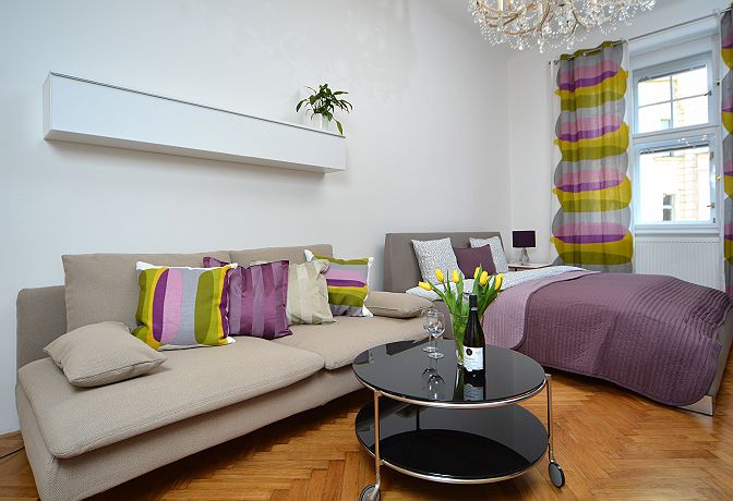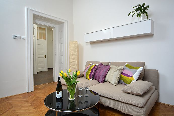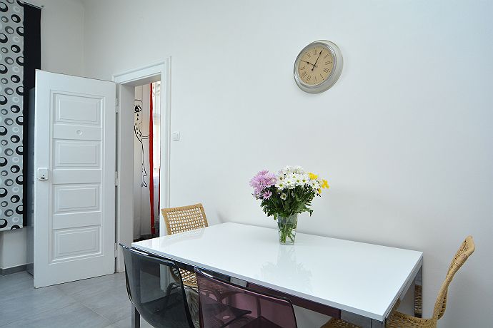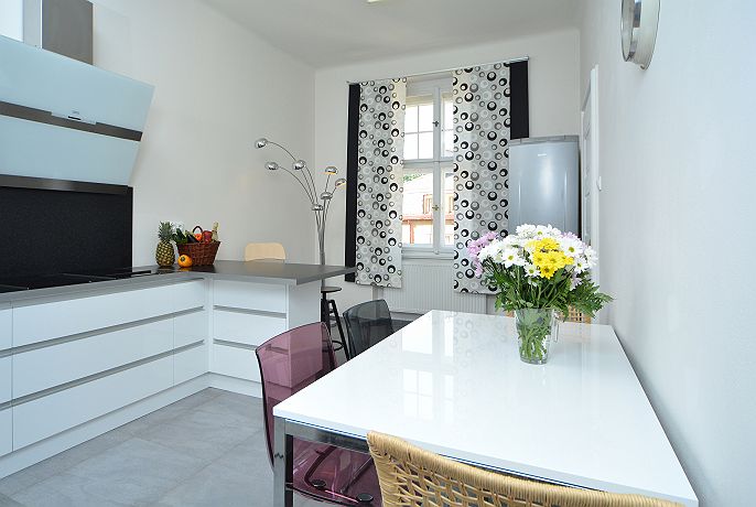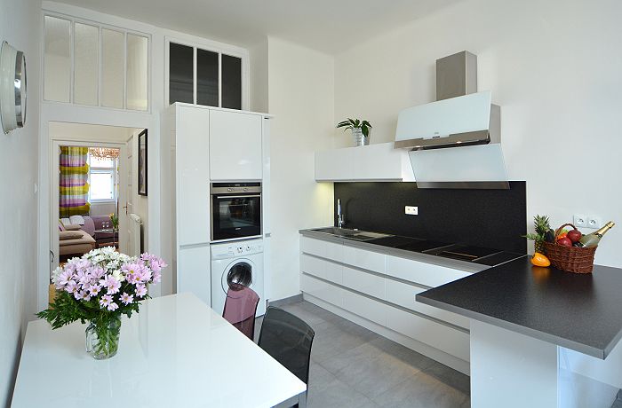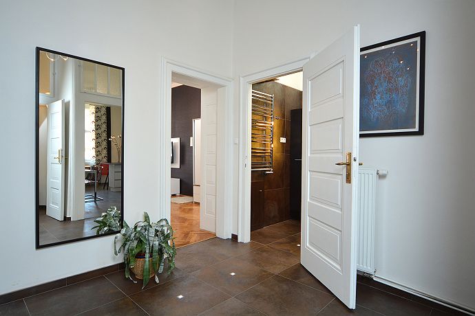This Luxury new-reconstracted two bedroom apartment is situated in the heart of Prague Old town. Apartment is located on the corner of Old Jewish center Josefov and famous Pařížská street tipical for luxurious shops like is Louis Vuitton , Bvlgary, Chanel. This position guarantees you are just steps from Old town square, Charles bridge, Kafka‘ s museum and many other important sights. In the surroundings you can find many restaurants, cafes, bars and shops. Apartment has a view to Old Jewish cemetery and to Parizska street from a bedrooms. The apartment is situated on the third floor of a building with lift that is typical of the area. Covering an area of 75m2, the property’s design and equipment have been thought out to comfortably accommodate 7 people. Hi -Modern fully-equipped kitchen featuring an induction cooker board, grill, microwave, toaster, coffemaker, electric owen , eletric kettle, washmachine, dishwasher . The modern decorated bathroom contains a box shower. From the hall going two bedrooms where you will find double beds king size, sofa´s, one flat - screen TV and wardrobes. On the other side of apartment there is third (half)bedroom great for deep beauty sleepers.