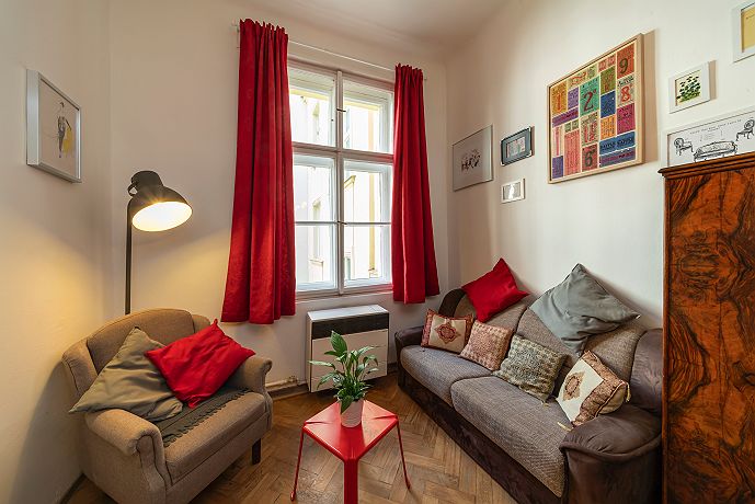 This apartment is fully furnishe and it has been recently reconstructed. It is situated in the very heart of Prague, which makes perfect starting point for sightseeing or enjoying any wonders of Prague. The location of the apartment is at Wenceslav Square, the entrance is directly through Lucerna arcade, and it is in third floor. The apartment consists of hallway, bathroom, restroom with double bed and also a loft for sleeping with one double bed and one single bed. There are for your convinience and use at the appartment included following items, clean linens and towels, toiletries, soap, coffee and tea. Around the location of the apartment are many restaurants, bars and cafe’s, as well as cinemas and clubs.
