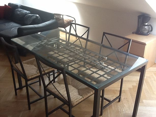 Large 2 bedroom duplex apartment situated in leafy and trendy Vinohrady, so ideally located for the local restaurants and bars but still just minutes away from the famous Wenceslas Square and centre. Downstairs there's a living room with 2 sofas, flatscreen tv, dining table, wc, and a small kitchen with everything that you could need, then upstairs there's 2 bedrooms both with a double and a single bed, with an extra single bed in the alcove between bedrooms, each bedroom has it's own cool private terrace with great views of Prague with terrace furniture. Also, upstairs there's a washing machine, clothes horse, iron and ironing board, airconditioning, safe and bathroom with bath tub and shower. The whole apartment has free wifi.