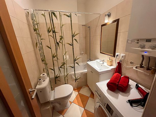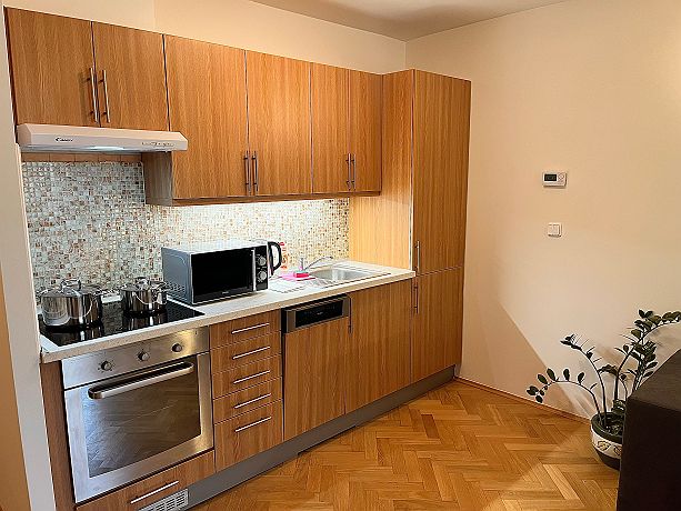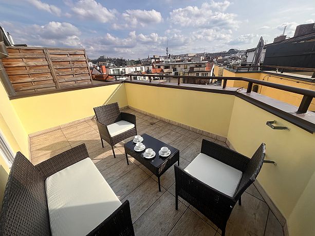 It is very nice apartment in the center of Prague. There is living room where is possible to sleep, kitchen, bedroom in upstairs area and there are two full bathrooms. The apartment is fully furnished with new appliances. All sightseeings are within walking distance. There is shopping mall Palladium only 5 minutes walking, bus station Florenc 4 minutes walking. The apartment is very quiet and amazing for sleeping. You can use a large terrace. All parties are strictly forbidden.