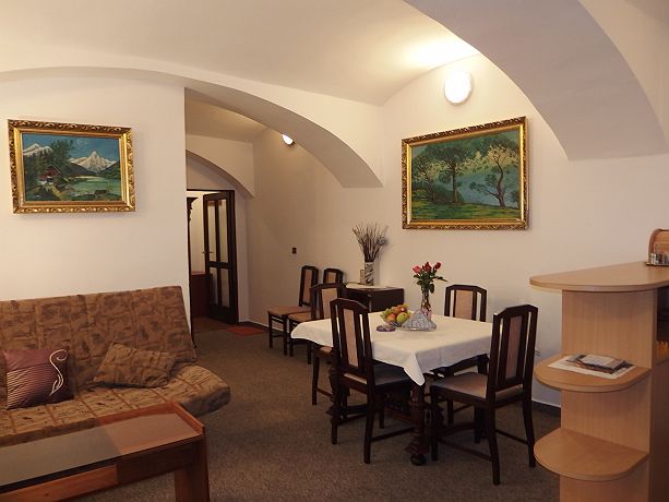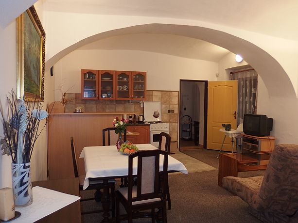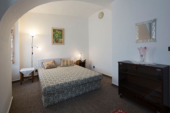 Beautiful and spacious apartment with stylish furniture and vaulted ceiling. Ideal for families, very comfortable The apartment is 55 sqm large and it easily accomodates 5 people (double-bed in bedroom, folding sofa in living room + additional single bed possible). The apartment has a private kitchen and private bathroom with toilet. Our Apartments At the Cats are 10 minutes walking distance from centre, on the river bank, just beside a cycloroute and next to the Garnet rock. Situated under Kotnov. Parking is possible in front of the house or at a parking place behind the river (about 50m away). Apart from a free wifi you will have at your disposal an outdoor swimming pool, a terrace, a grill and recently we lend our bikes (fee is optional, normal wear and tear). We do not provide a classical breakfast, but you will have plenty of food at your disposal and you can decide what and when you want to eat. There will be various things from tea/coffee/milk, bread and rolls, vegetable/fruit, muesli, yoghurt, ham, cheese etc.