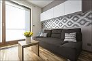 Modern studio apartment with air-conditioning, kitchenette and bedroom, located in the new housing estate „Mozaika Mokotów”, on the 3rd floor (a lift in the building). This completely furnished luxury apartment with stylish and tasteful furniture, appliances and fixtures is perfect for business stay. In the bedroom is a very comfortable double bed and sofabed for two persons in the living room. It has a parking space in the underground garage for guest’s disposal. This modern building is surrounded by green spaces with a carefully designed small architecture, playground and walking alleys, its located 150 meters from the nearest road, which significantly increases the comfort of living. Nearby are service centers, shops, offices, kindergartens, schools, the Shopping Center „Galeria Mokotów”, and a business center. Key pick up: 12 Miodowa Street from 4pm Arrival after 9pm only on the request and paid 30€ or 120 PLN Check out is until 11:00 am